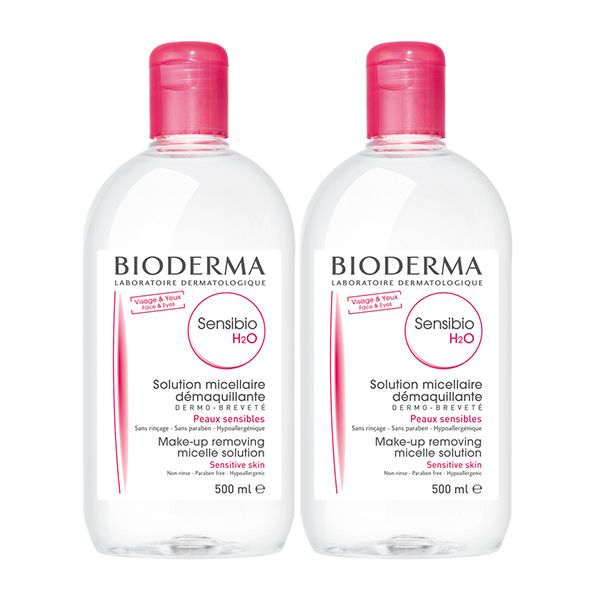 Pack composto por 2 embalagens de Bioderma Sensibio Solução Micelar H2O de 500ml.